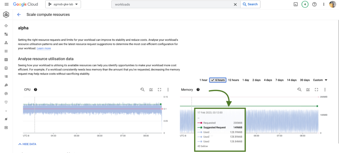 GKE 将来自 Kubernetes Vertical Pod Autoscaler (VPA) 的建议直接集成到其工作负载控制台中,目前适用于集群中的所有部署。在查看特定工作负载的页面时,你可以通过导航到 Actions > Scale > Scale compute resources 菜单找到它。