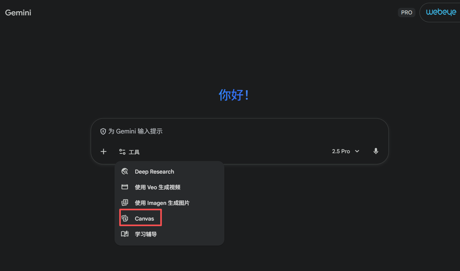 关键一步来了:在输入框的左下角,找到一个工具栏(像两个小锤子),点击它,然后一定要选择「Canvas」模式。